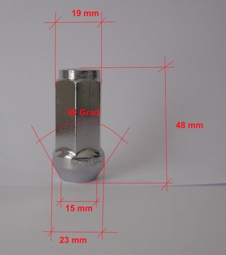 Chrom Radmutter 60 Grad KonusTyp XL Bulge Acorn, lang