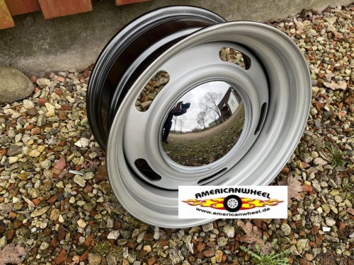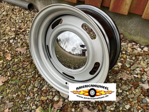 | 4x Stahlfelge silber im klasischem Ralley Style ohne ABE oder Gutachten Moon Caps sind nicht enthalten, die müssen gesondert bestellt werden. Passend für alle älteren US Cars mit diesem Loch |